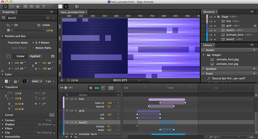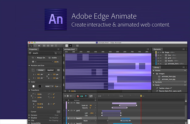 "Adobe® Edge Animate is a new web motion and interaction design tool that allows designers to bring animated content to websites, using web standards like HTML5, JavaScript, and CSS3."