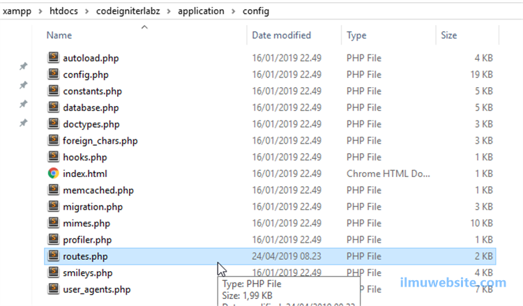 Lalu silahkan masuk ke x:\xampp\codeigniter\application\config, buka file routes.php , seperti pada gambar di bawah ini