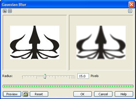 15. Masih dalam kondisi pilih objek yang baru diconvert kemudian pilih menu Bitmaps | Blur | Gausian Blur