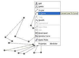 8. Lalu klik kanan disalah satu vertex tersebut, kemudian pilih to curve.
