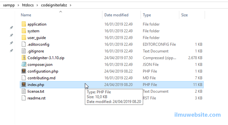 Untuk testing kali ini saya menggunakan codeigniter yang masih fresh install. Artinya belum ada project yang digarap. Dan direktorinya pun masih default, index masih mengarah welcome controller.