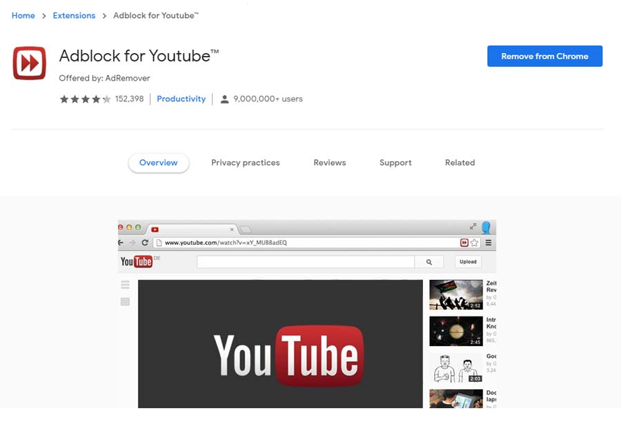 Chrome extension Adblock for Youtube ini bekerja di belakang layar, sehingga ketika Anda mengakses youtube tidak perlu melakukan apa-apa, Anda tinggal duduk manis menyaksikan youtube memutar video tanpa iklan. Untuk mendownload extension-nya silahkan kunjungi https://chrome.google.com/webstore/detail/adblock-for-youtube/cmedhionkhpnakcndndgjdbohmhepckk?hl=en